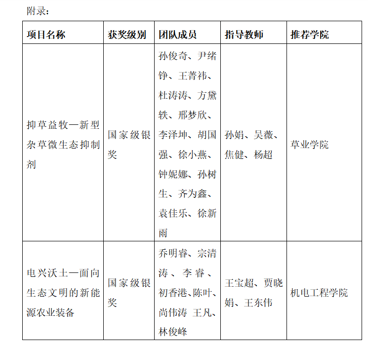草业学院孙俊奇、尹绪铮、王菁祎等十四名学生申报的项目《抑草益牧—新型杂草微生态抑制剂》,发挥学院专业优势,积极响应国家振兴奶业苜蓿发展行动,围绕服务黄河流域生态保护和高质量发展需求,聚焦苜蓿种植过程中化学除草剂存在的难保存、起效慢、存活率低三大痛点,创新开发了绿色安全生态除草剂,通过优化配方延长保存时间、抑制杂草根部生长、优化配方后菌株,在轻中度盐碱地存活率高达96%。该项目已获得多方专家认可,产品总体达到国际先进水平,经济、生态、社会效益显著;产品提高了苜蓿产量,促进了乳业的发展;产品具有零污染、可持续、无残留三大优点,为提高苜蓿质量、振兴奶业保驾护航。